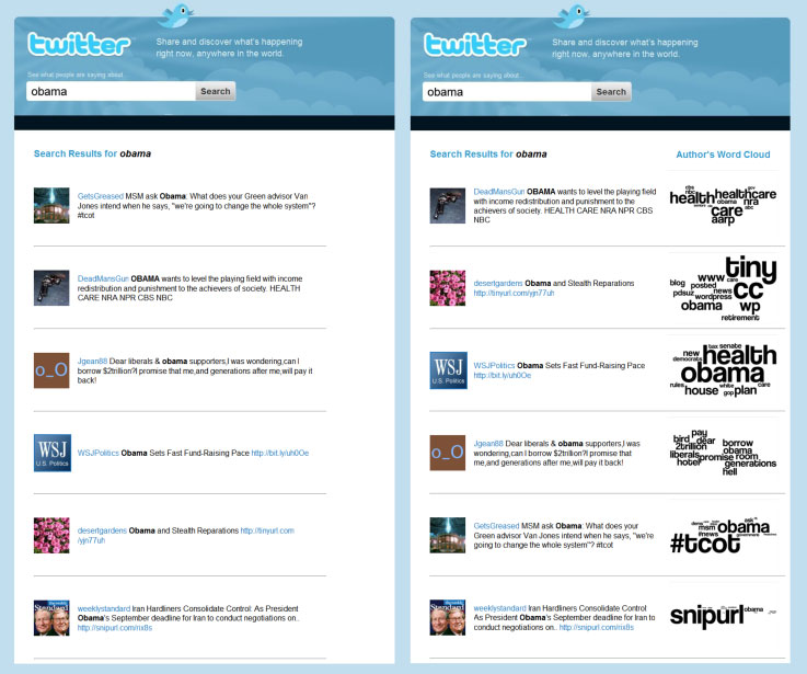Increases in the usage of microblogging services have increased interest in microblog searches. Word clouds could be added to microblog search results to produce measurable effects on the microblog search experience. Research was carried out to test whether word clouds improve the user satisfaction of using a microblog search engine when searching for microblogs focused on a particular topic. Research participants completed simulated search tasks in which half the participants were shown word clouds with their search results. Following the search simulations participants completed a survey focused on analyzing user satisfaction related to the exercises performed. The findings of the research were largely statistically insignificant but may indicate that participants felt neutral or slightly positive satisfaction with their search simulation tasks regardless of the presence of word clouds. The implications of this research suggest further study is required to understand the effects of including word clouds alongside microblog search results.
